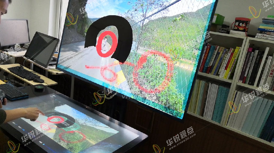项目介绍:AR野外地质考察虚拟仿真展示台是显示对整个虚拟地质考察系统的介绍信息。通过交互屏界面操作,主屏界面显示以遥感图像作为底图的实习路线轨迹,并标注考察点名称及主要考察内容。主屏幕在全景的基础上显示一个视频播放窗口,显示并播放现场实地讲解的视频。